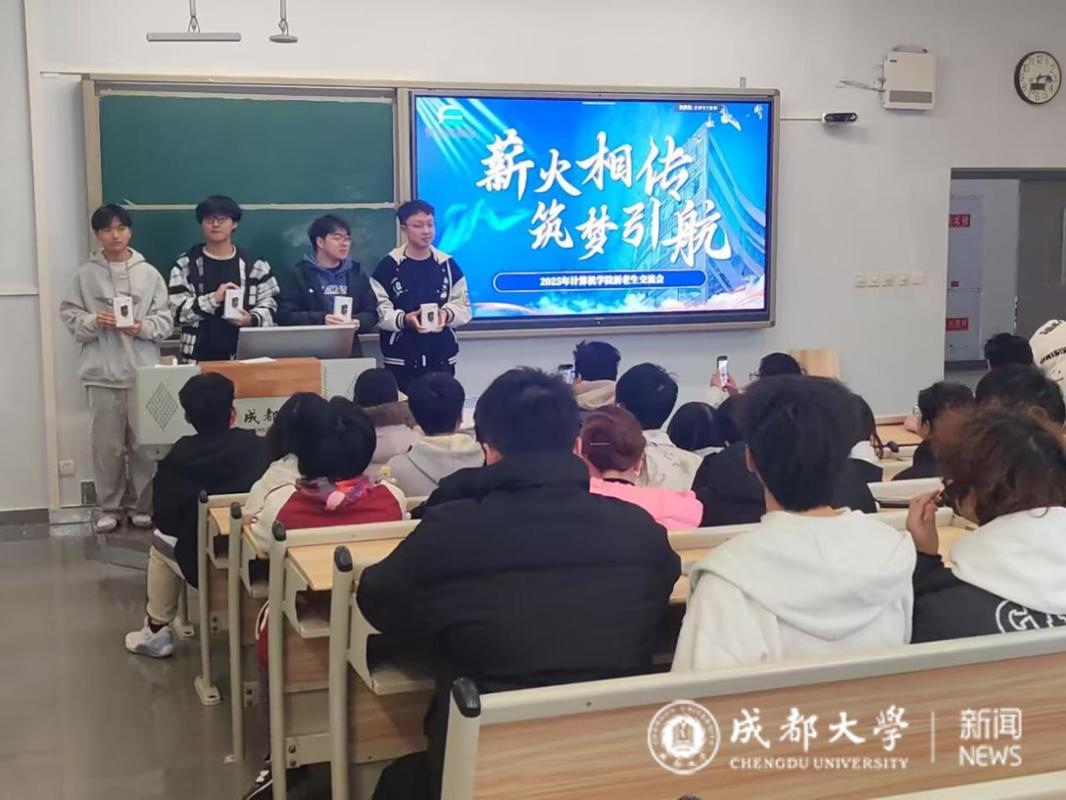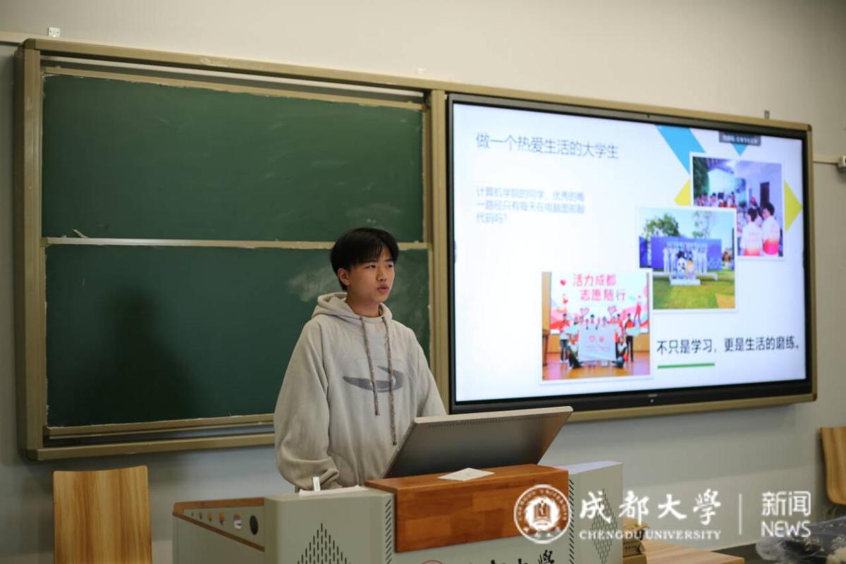 在经验分享环节,四位优秀学长依次登台,从不同维度为新生带来 “干货满满” 的分享。吴奇峰学长作为学业与竞赛双优的 “标杆代表”,结合自身斩获国家级奖学金、屡获学科竞赛佳绩的经历,详细拆解了高效学习方法、时间管理技巧与竞赛备赛策略,鼓励新生们 “深耕专业、勇于尝试”。