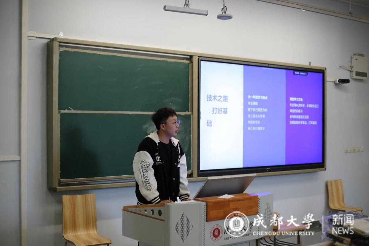 王子虚学长则立足长远发展,从职业规划、升学备考等方面展开分享,通过自身实战经验为新生解析未来发展路径,引导大家 “早规划、早行动”。四位学长有理论指导,又有实例支撑,赢得了现场新生的阵阵掌声。