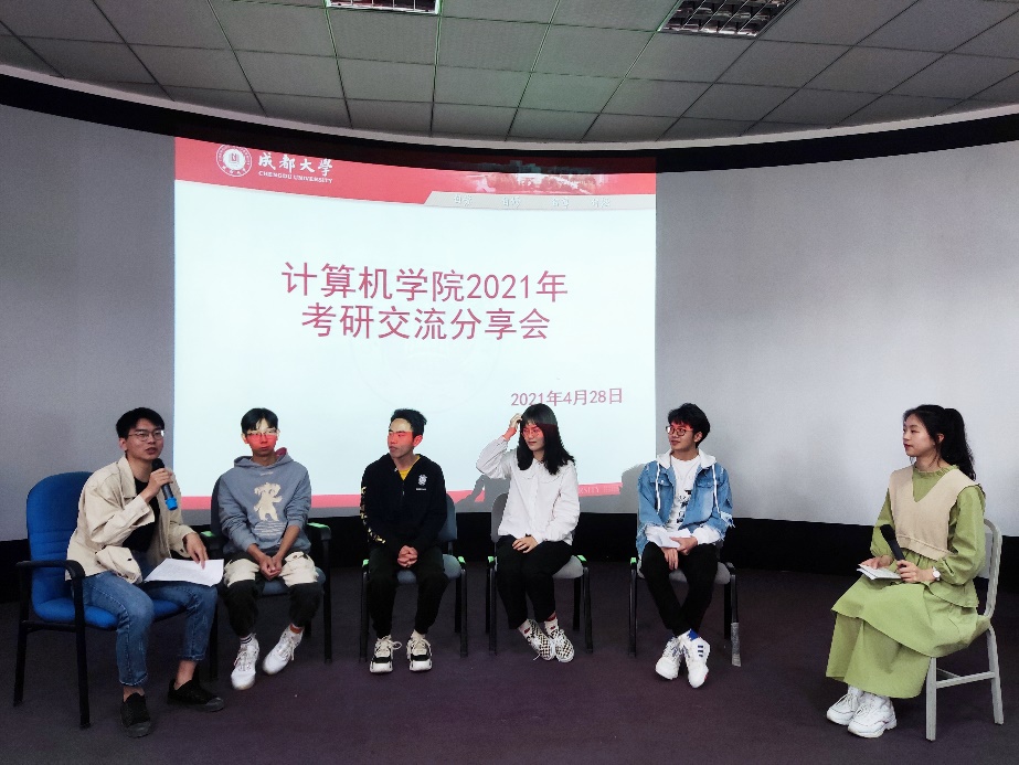 在10501演播厅举办了2021年考研交流分享会。本次活动邀请了成功考取中南大学、云南大学、西南交通大学、西南大学、广州大学的五名2017级优秀考研学子到场交流,为学弟学妹们分享考研经验。
