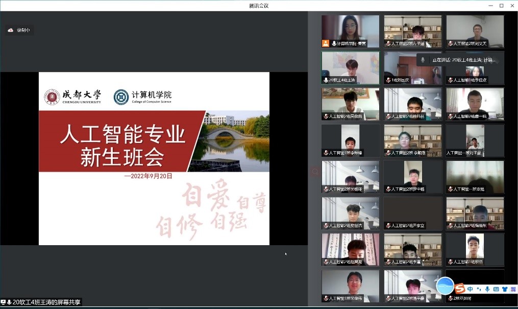迎来了新成员——人工智能,并于9月20日由班主任秦营老师主持举办了新生线上见面会。使得素未谋面的新同学对彼此有了一个相互的了解,让他们能够在未来的大学生活能够更加愉快的相处。