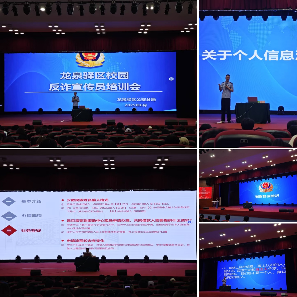 龙泉驿区公安分局唐警官则通过绘声绘色地讲述真实案例,生动剖析被诈骗原因及易受骗人群特征,传授基础反诈方法,并特别提醒反诈电话96110,引发在场学生热烈反响。不少同学表示,讲座内容贴合实际需求,既解决了助学贷款办理的疑惑,又提升了防骗警觉性。