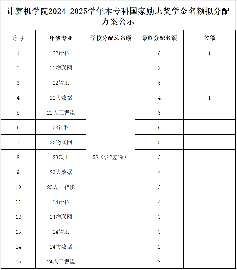 Bwin体育 2024-2025学年本专科国家励志奖学金名额拟分配方案公示如下:
