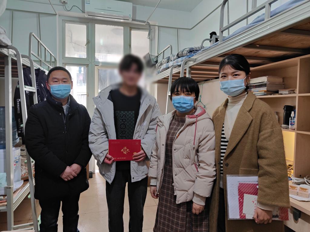 对他们的关心和帮助,并鼓励学生克服困难,不断提升专业能力水平,自立自强,用个人努力翻开人生新篇章。在走访结束后,老师们还送去了学校的专项慰问金,并传达了对学生及家人的新春祝愿。