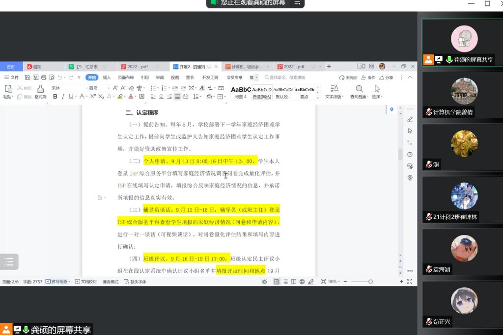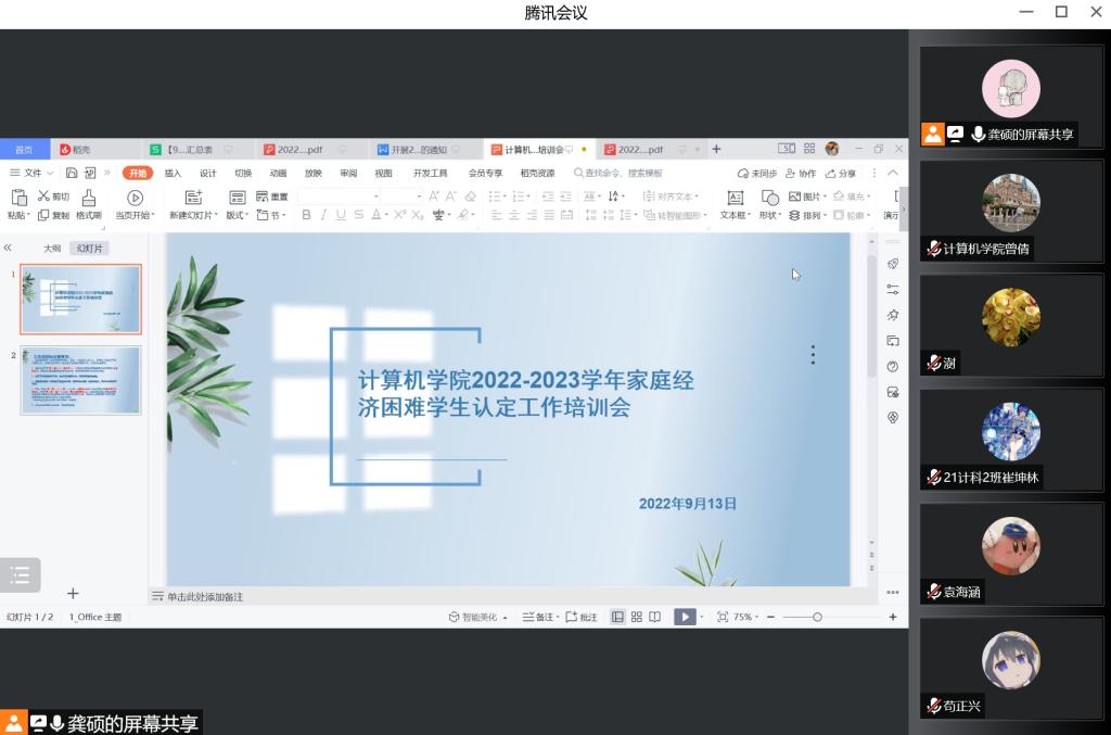 线上开展2022-2023学年家庭经济困难学生认定工作培训会。本次会议由学工办老师龚硕主持,2022级新生班主任、Bwin体育