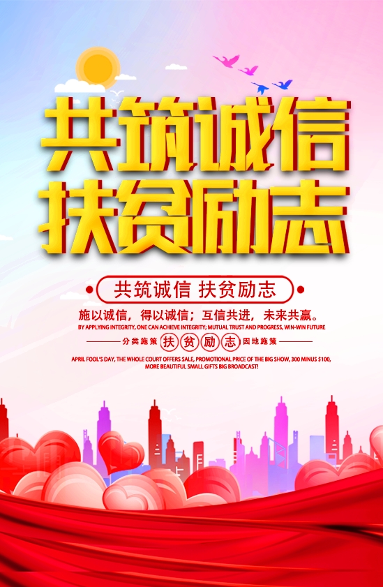 诚信主题宣传画作品《共筑诚信,扶贫励志》 作者:2022级物联网工程 丁豪
