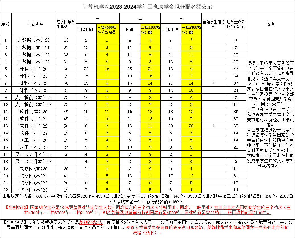 根据《成都大学关于做好2023年普通高等学校本专科生国家奖助学金评审工作的通知》相关要求,Bwin体育 2023-2024学年国家助学金名额拟分配方案如下,共528名(含差额2名、退役复学学生名额22名,具体名额分配见附件)。