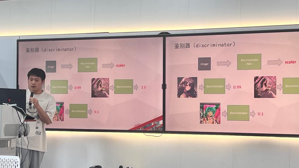 刘凡明同学分享图像视频生成式方法前沿探讨。主要涉及三个方面。首先,他介绍了图像生成领域的经典网络:生成对抗网络(GAN),包括其工作原理、对抗方式、目标函数以及存在的一些问题。其次,他简要介绍了变分自动编码器、流模型、扩散模型等内容,以便更好地了解图像生成领域的发展状况。最后,他简要介绍了视频生成领域的一些框架及模型,了解视频生成领域的发展以及目前存在的难题,并对未来工作的优化方向进行了展望,提出了一些可能的途径。