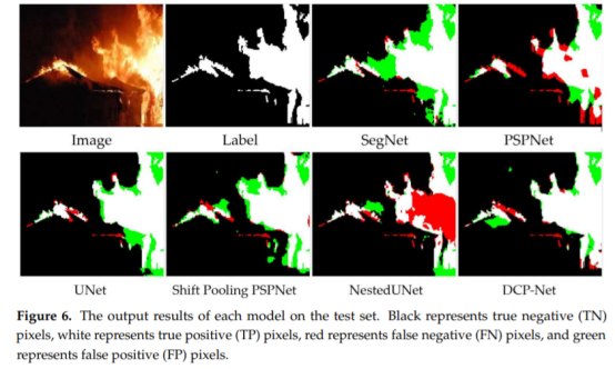 为了解决火灾智能识别中纹理和位置信息不准确的提取所产生的误差,本文开发了一种新的网络DCP-Net,可以更好的捕捉多个尺度下的火焰特征,并选用了由科西嘉大学"环境科学UMR CNRS 6134 SPE"实验室制作的Corsican Fire Dataset和Chino et al.制作的BoWFire Dataset进行实验,并与SegNet、UNet、UNet++、PSPNet等网络进行比较,结果显示我们的算法在mIoU, F1-score, and OA三个指标上的表现都是最好的,证明该网络具有良好的鲁棒性,能够准确识别一些复杂的火焰,为火灾的智能识别提供了极好的贡献。