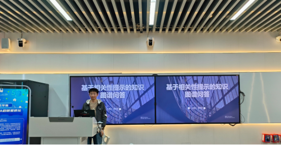 之后,郭作佳同学以“基于相关性提示的知识图谱问答”为题,介绍了在大语言模型 (large language model, LLM)中,在垂直领域问答任务上效果较差,主要是传统知识图谱问答系统在面对多跳推理或模糊查询时,常因信息关联性不足而失效。文章提出了的基于知识相关性的知识图谱问答方法,通过动态挖掘实体与关系的语义相关性,引导模型聚焦关键路径,在实验中,可使问答准确率提升12.5%。
