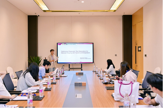 况熙同学报告题目是《Optimizing Diagnostic Text Generation for Medical Imaging with Hybrid LLM Adaptation》,本研究旨在提升医学影像诊断报告的生成质量。针对通用大模型在医学领域存在幻觉问题及专业数据匮乏的挑战,提出结合LoRA低秩微调与GPRO强化学习的混合适配方案,显著优化了生成文本的准确性与稳定性,实验结果在BLEU与ROUGE等指标上均优于基线方法。