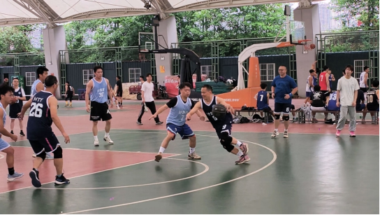 随着裁判一声哨响,现场气氛瞬间被点燃。只见双方队员迅速进入状态,展开了激烈的角逐。导师们凭借沉稳的球风,巧妙地组织进攻与防守;研究生们则以敏捷的身手、灵活的运球和默契的配合,不断寻找进攻机会,现场的加油声、呐喊声此起彼伏。比赛过程中,双方你来我往,比分交替上升,每一球都充满了悬念。