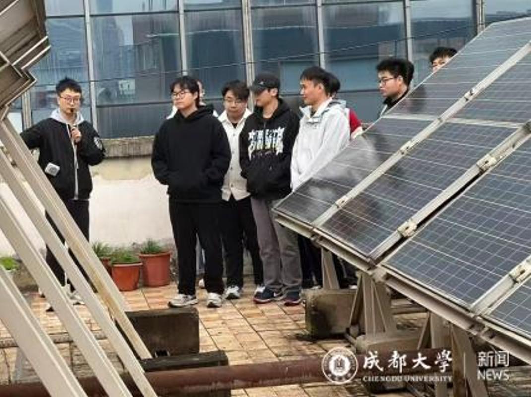 的屋顶光伏实验平台。吕晶晶导师结合自身 “人工智能在电力系统中的应用” 研究方向,与川大师生就光伏设备智能监测、数据采集与算法优化等技术细节展开研讨,现场演示了设备运行原理及数据处理流程,双方围绕跨学科技术融合的实际痛点进行了深入交流。
