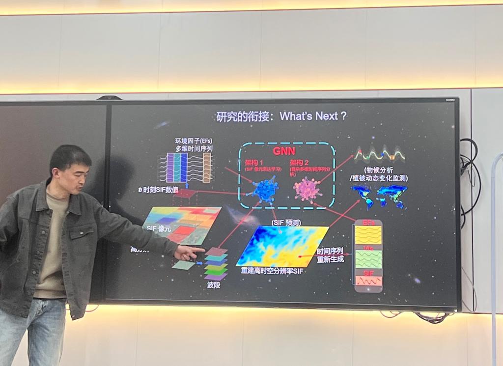 最后,于龙龙重点介绍了数据科学在科研领域的应用。他提到了时空大数据的概念,包括地面基础数据、空间观测数据以及各类轨迹数据。他分享了一个具体的研究案例——日光诱导叶绿素荧光。这项技术被称为地球植被生产力的革命性探测针,能够快速地应用于地球植被动态变化的检测。他还提到了在遥感数据处理中可能遇到的瓶颈和数据重建等挑战。