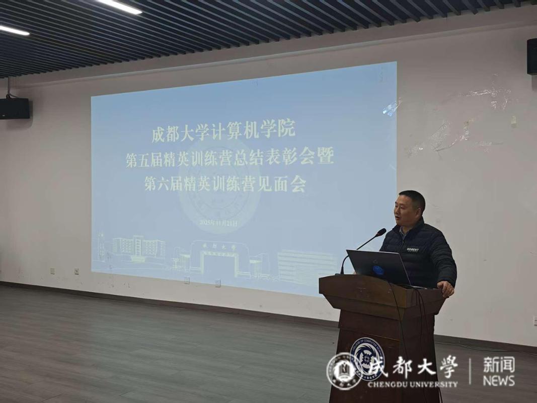 随后,龚硕老师为第五届精英训练营表现突出的学员颁发了奖状。获奖学生在技术学习、科研实践、团队协作等方面表现优异,为营员树立了良好榜样。优秀学员代表李佳樊在会上进行了发言,分享了在训练营中的成长经历与学习体会。