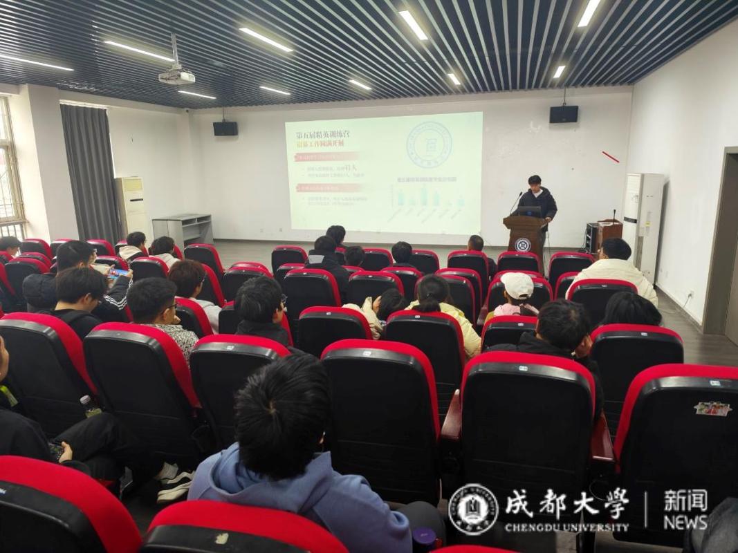 党委副书记孟源、学工办主任龚硕、精英训练营负责人吴奇峰以及第五届、第六届精英训练营成员参会。本次会议总结了第五届精英训练营一年来的培养成果,表彰一批表现突出的优秀学员,并全面介绍第六届精英训练营的培养规划。