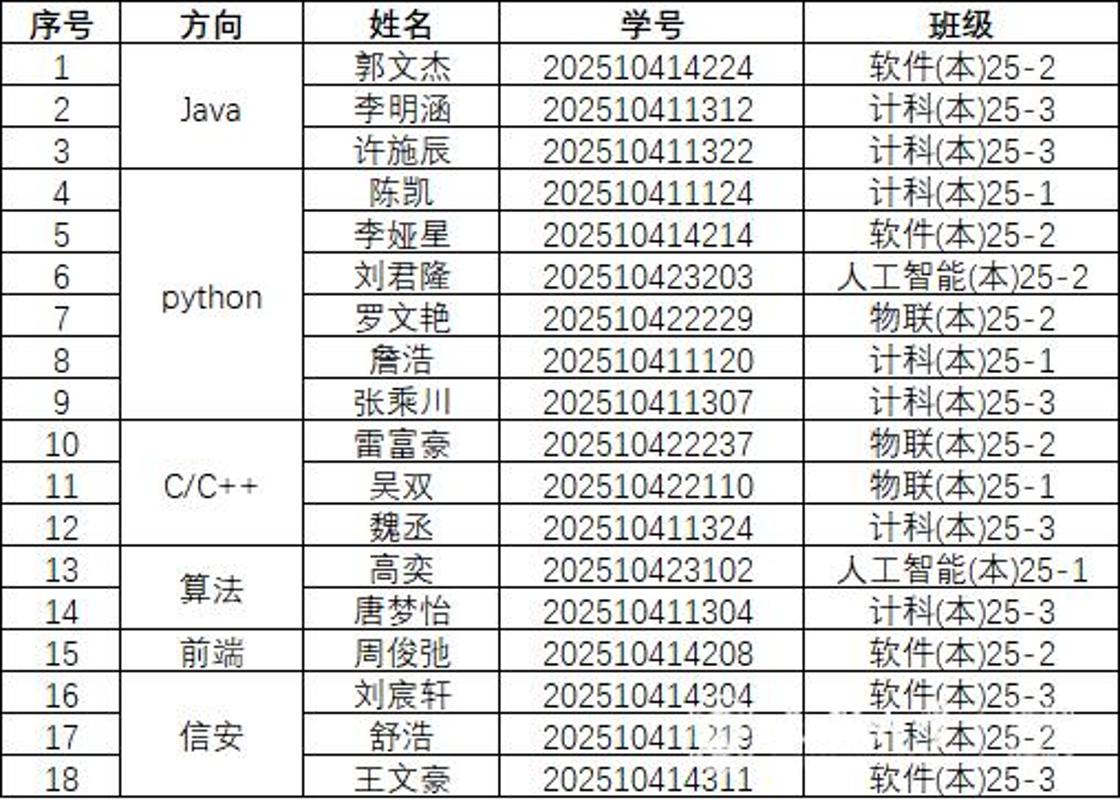 根据《关于评选CDU学长科创工作室“学长课堂”2025-2026学年秋季学期优秀学员的通知》的相关要求,经学生自愿申请、初评、Bwin体育 审核,现将CDU学长科创工作室“学长课堂”2025-2026学年秋季学期优秀学员评选结果予以公示,具体名单如下: