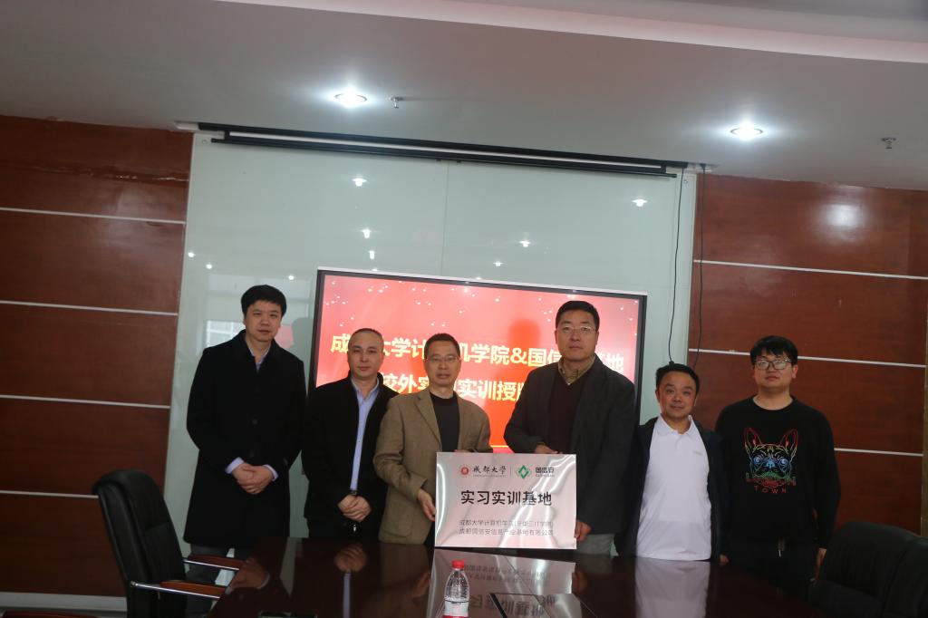 的办学特色、毕业生情况、开设专业等进行了介绍。刘泽平介绍了国信安公司的实习基地情况,双方在会议室进行了共建基地合作签字,并举行了授牌仪式。