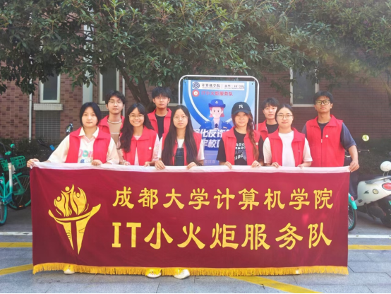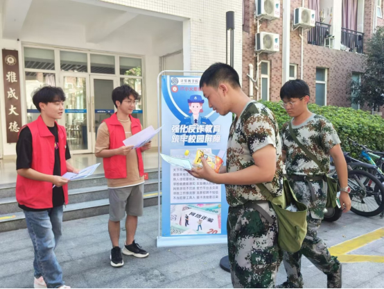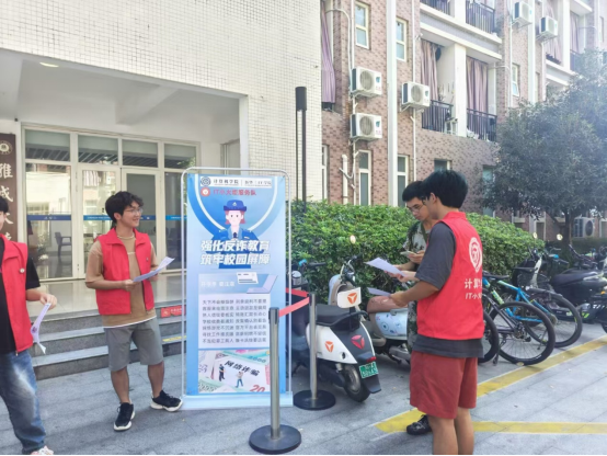 国家网络安全宣传周刚刚结束,但防范电信诈骗不能松懈。现场,IT小火炬党员服务队的队员们身着统一服装,向进出宿舍的同学们发放反诈知识宣传单,现场与同学们开展互动问答。对于初入大学校园的大一新生,队员们进入寝室宣传,希望他们提高反诈意识。