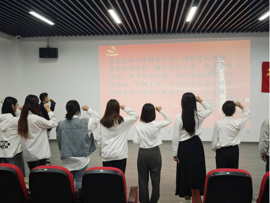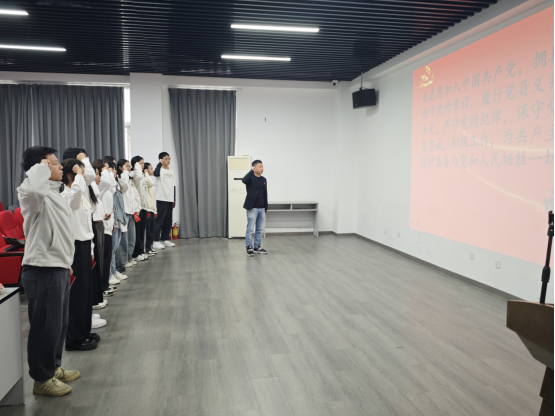学生党支部于10501室开展重温入党誓词主题党日活动,学生党支部书记饶涛主持,第64期全体预备党员现场宣誓。
