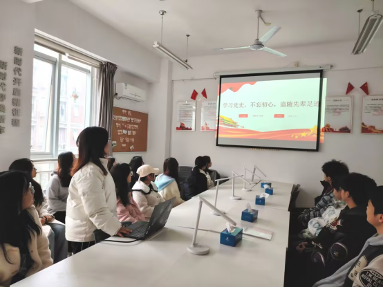 伊始,戴敏如同学通过历史资料与革命故事,分享党的发展历程。从新民主主义革命的艰苦创业,到社会主义建设的热情高涨,再到改革开放后的辉煌成就,这些重要节点串联起党的奋斗史。先辈们面对艰难险阻不怕困难、敢于斗争、坚守初心使命的精神,值得我们每一位同学学习。