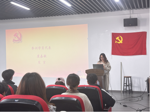随后,学生代表虞嘉敏同学发言,并承诺以理论学习夯实思想根基,以实践行动践行初心使命。