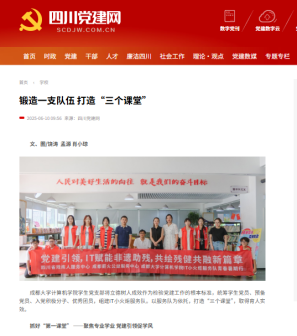 学生党支部在四川党建网发表文章:《锻造一支队伍 打造“三个课堂”》。该文从“三个课堂出发”,系统总结了学生党支部以IT小火炬服务队为载体,在党团一体育人方面的实践经验。