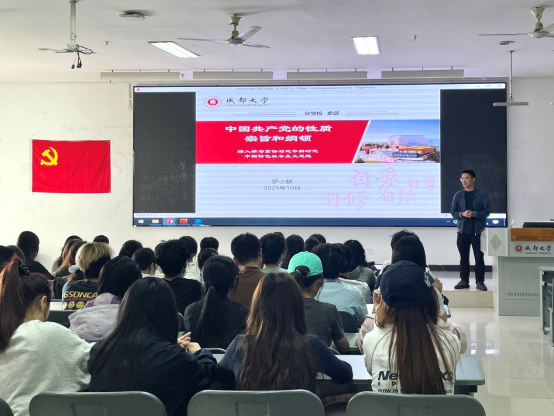 学生党支部书记、学工办副主任罗小麟老师为全体拟积极分子授课,授课主题为“中国共产党的性质和纲领”。罗老师阐述了党的阶级基础、党的最高理想和最终目标,以及党在现阶段的基本路线与战略任务,呈现了党的纲领体系的基本框架。通过此次党课,同学们更加坚定了向党组织靠拢的决心。