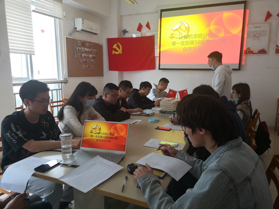 学生第一支部58期发展对象自评互评大会在16栋党员活动室举行。会议伊始,由余美儿同志点到,全体起立,共唱国际歌。随后,余美儿同志就本次自评互评规则进行了讲解。各位拟发展对象围绕自我介绍、活动表现、对党的认识以及学习和工作这四个方面进行自我评价,此外各位同志需要回答其他同志的问题。本次会议的过程中,各位同志积极参与发言与提问,不仅能更加深入了解彼此,也能相互交流经验。