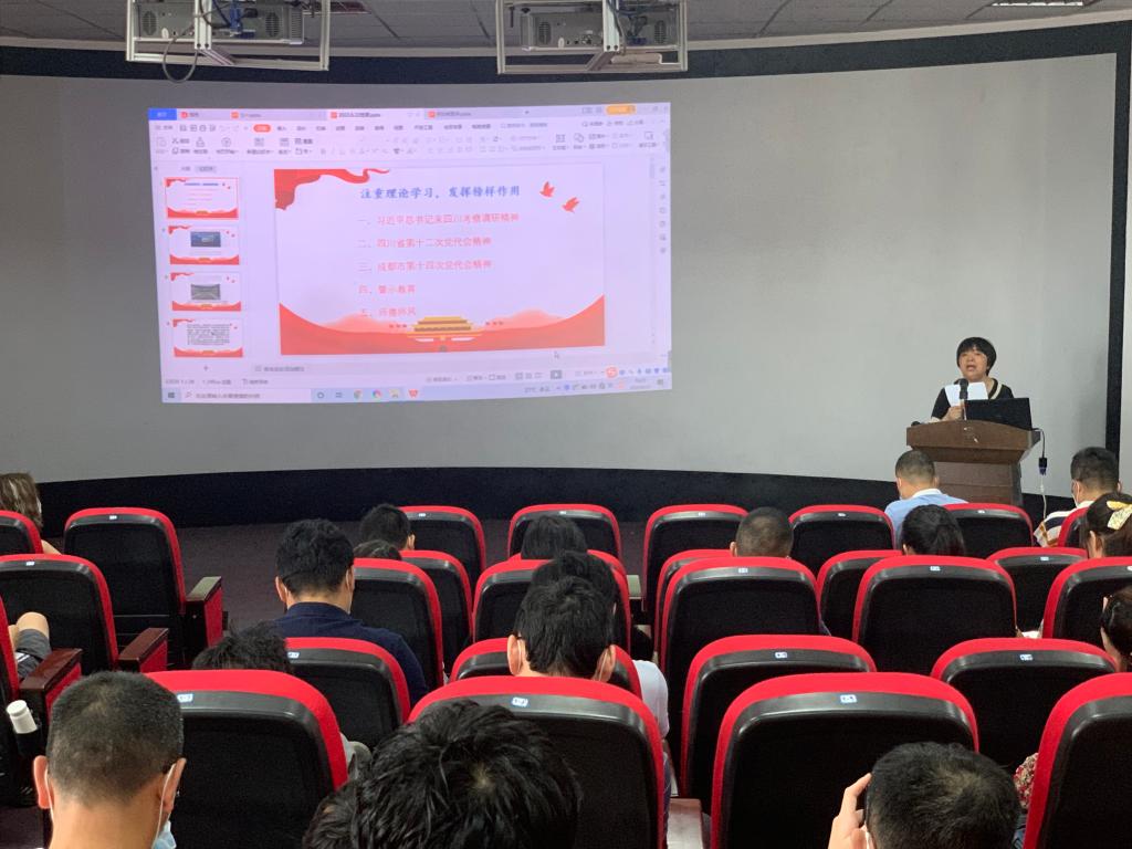 党委书记肖小琼首先进行了党课授课,围绕建党101周年主题,党课选取了五个主题进行了讲授,组织师生党员深入学习了习近平总书记来四川考察调研精神;全面深入讲授了四川省第十二次党代会精神、成都市第十四次党代会精神;结合学校近期借培训名义搞公款旅游问题排查整治专项工作进行了案例警示教育;组织学习了师德师风风险案例及新时代高校教师职业行为十项准则,再次要求党员教师带头落实好师德师风建设工作。