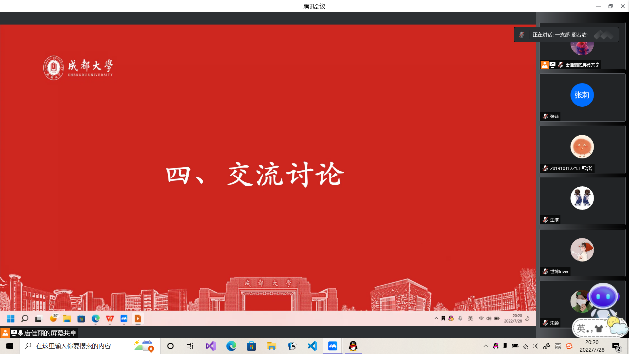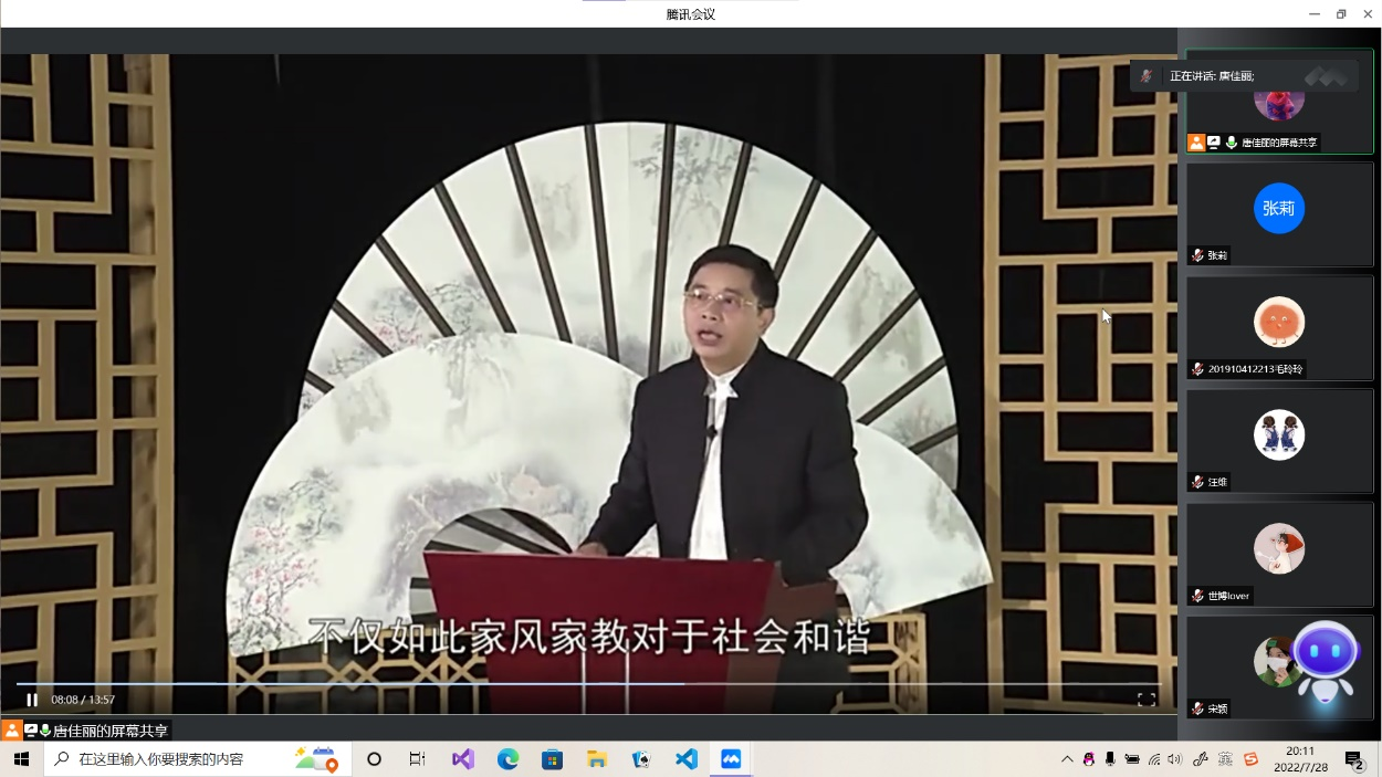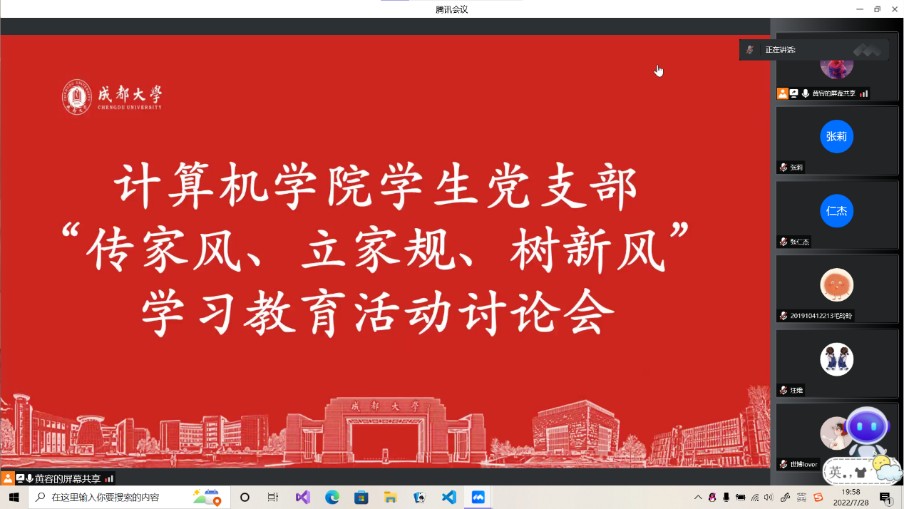 学生第一、第二党支部召开“传家风、立家规、树新风”线上学习教育活动讨论。第一支部黄容同学主持会议,全体学生党员、预备党员与会。