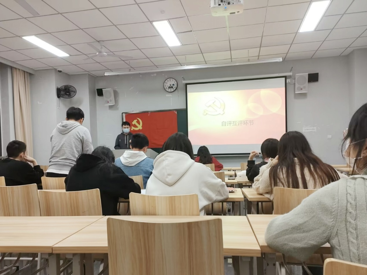 会议伊始,主持人进行点到并讲述本次自评互评规则,指出本次自评互评各位同志需从自我介绍、活动表现、对党认识、学习工作四项内容对其他同志进行打分,紧接着全体同志起立共唱《国际歌》,随后主持人宣布本次自评互评会正式开始。