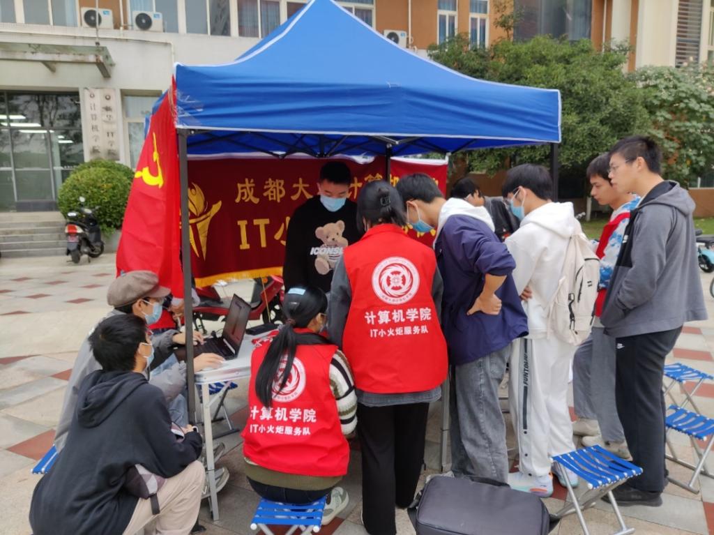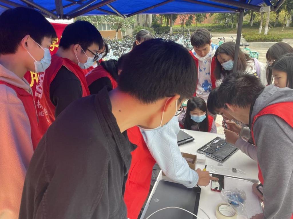 本网消息(图/文 谢梁)11月6日,IT小火炬服务队于第十教学楼门口摆点,开展义务维修活动,帮助有需要的同学们处理电脑方面相关问题。