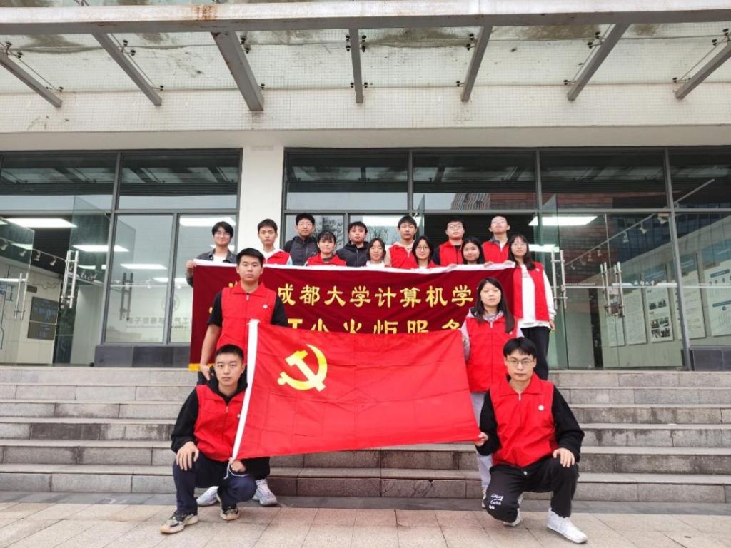 在微凉的秋风中,IT小火炬服务队的队员们一个个在十教集合,在第十教学楼门口摆好设施。九点整,IT小火炬服务队便开始了摆点活动。