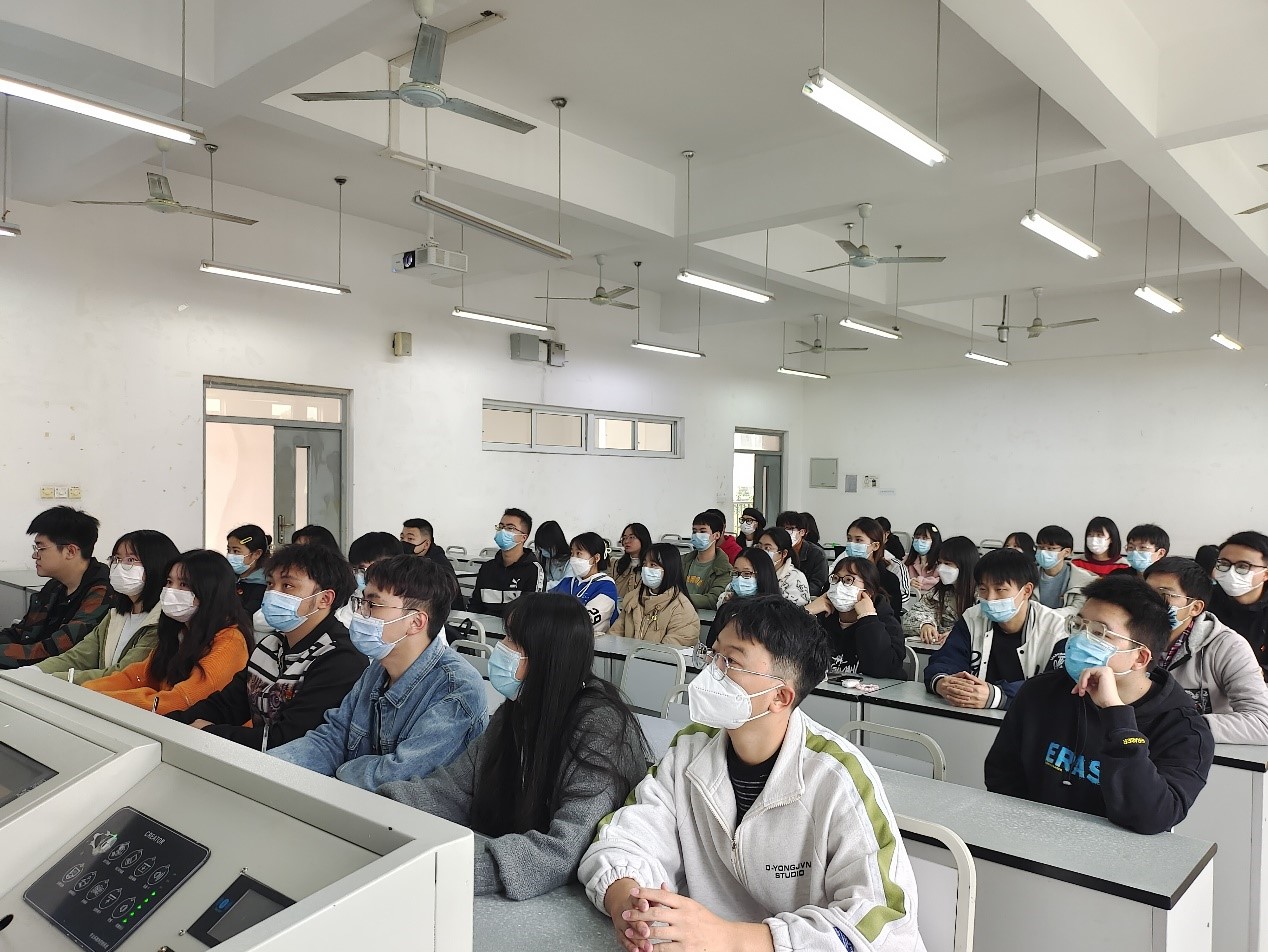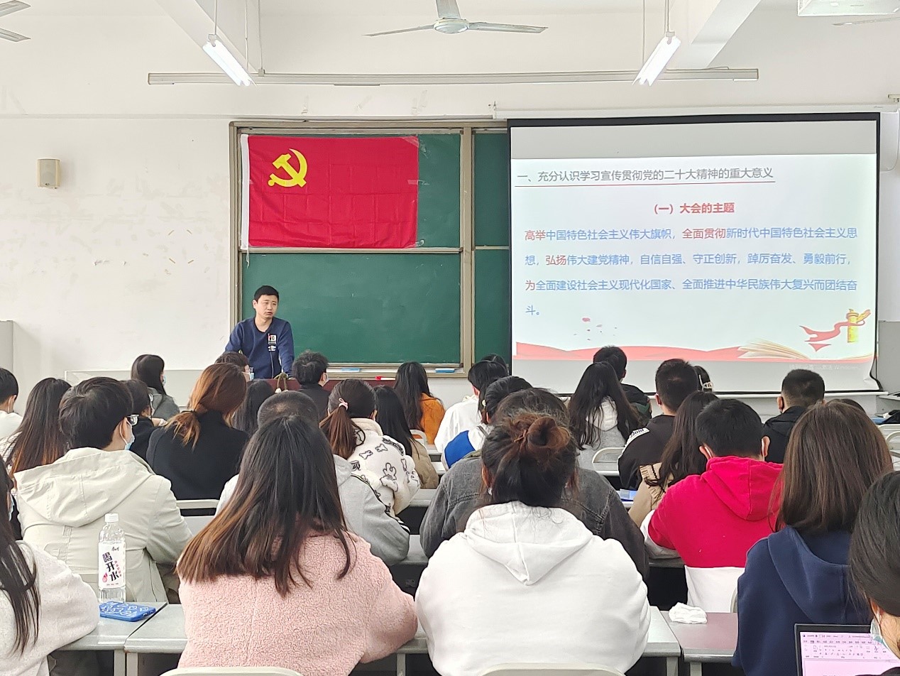 学生党支部书记饶涛老师于10教201教室讲“立足新时代,奋进新征程——学习贯彻党的二十大精神”主题党课,学生党支部全体正式党员、预备党员到场聆听。