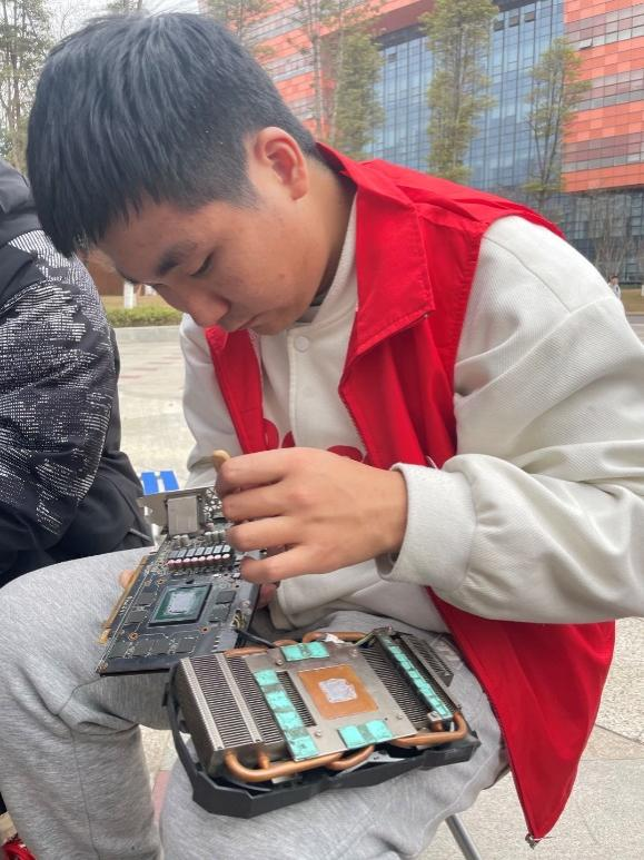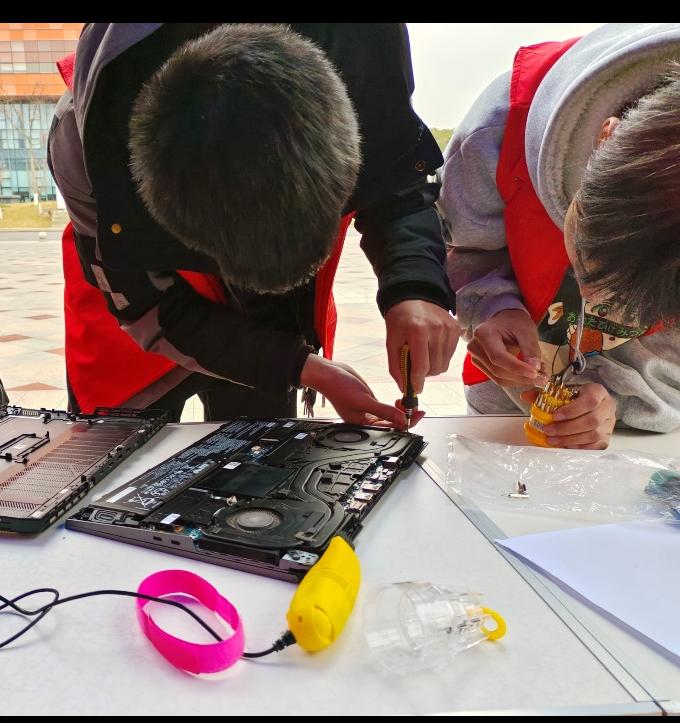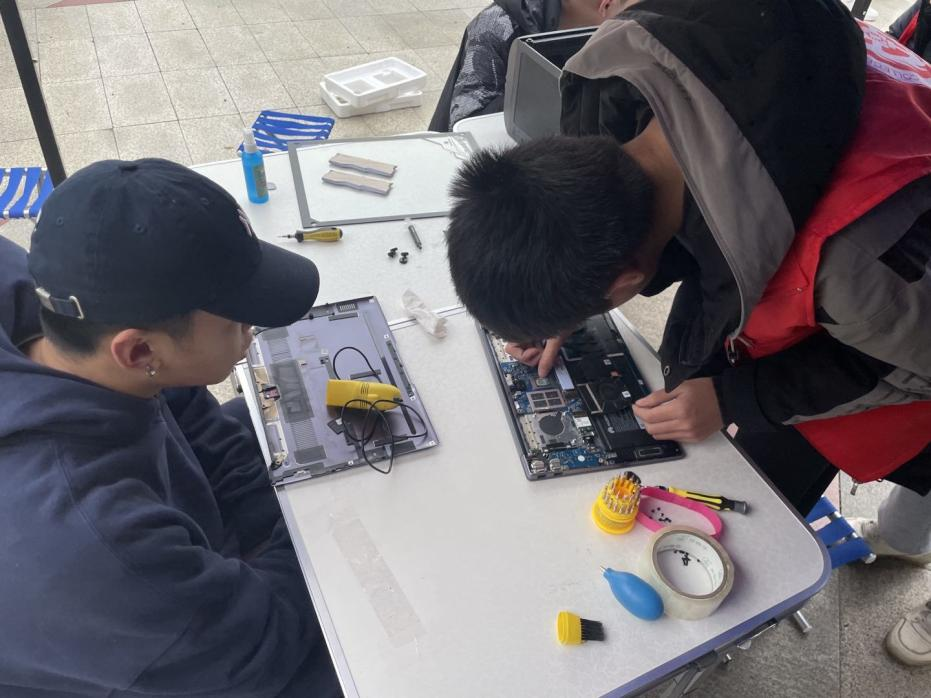 尽管距离上一次摆点已过两个月,但队员们的手毫不生疏,热心仔细帮助前来的同学解决电脑问题,随着前来询问的同学人数增多。在摆点活动过程中,新队员也纷纷进行上手尝试,从实践中学习到许多新技巧。