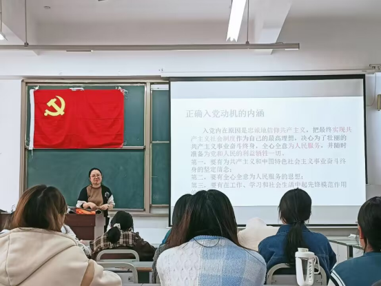 刘毅老师为全体拟入党积极分子讲《端正入党动机争取早日入党》。刘毅老师对大学生入党动机进行分类,告诉同学们要树立正确的入党动机,并阐述了正确入党动机的内涵:入党内在原因是忠诚地信仰共产主义,把最终实现共产主义社会制度作为自己的最高理想,决心为了壮丽的共产主义事业奋斗终身,全心全意为人民服务,并随时准备为党和人民的利益牺牲一切。同时刘毅老师提到要加强理论学习,为树立正确的入党动机奠定理论基础。刘毅老师希望同志们端正入党动机,加强理论学习,树立正确的世界观、人生观、价值观,自觉对照党章寻找差距,以实际行动争取早日入党。