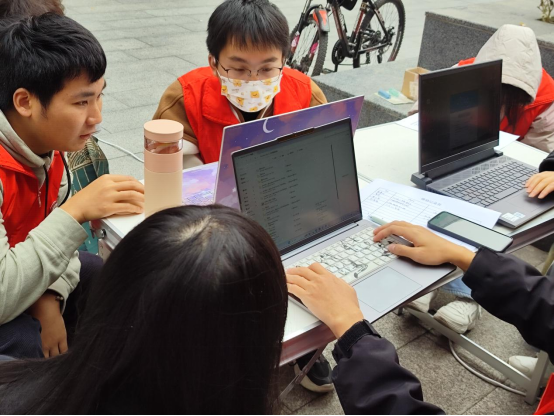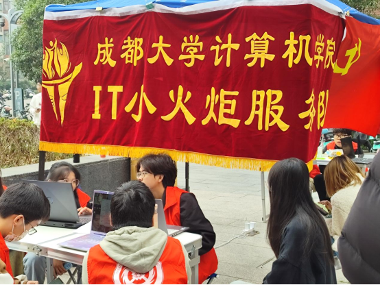 学生党支部IT小火炬服务队于2023年11月25日上午9:00到下午17:00在学生宿舍15、16栋楼下进行了义务摆点活动。此次义务摆点活动由队长徐弘璋带队,为同学们义务提供电脑修理、软件安装、答疑等内容。