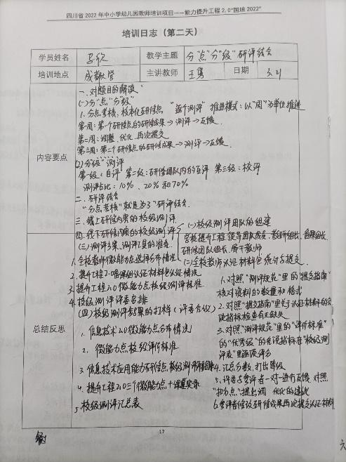 这次培训围绕《四川省教育厅关于做好 2022 年中小学幼儿园教师培训项目任务实施工作的通知》和《关于做好能力提升工程 2.0“国培 2022”项目实施工作的通知》的要求,通过理念引领、案例展示、实地观摩、任务驱 动等方式。培训在总结 2.0 项目实施的基础上,通过优秀案例的展示和分享,进一步提升学员对信息技术与教育教学融合应用的认识和体会;通过理念引领,进一步提升了教师的数字化转型和数字素养理念;通过实地观摩,学科教学与信息技术融合应用、高阶能力点的融合应用;通过任务驱动,提升了培训团队信息技术应用指导能力。通过成果汇报与案例收集,印证了培训目标的达成。