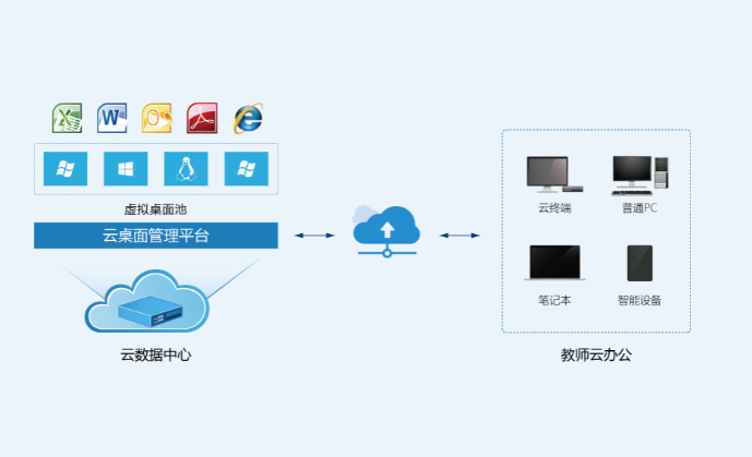 通过这种统一化桌面和资料访问的方式,不仅可以集中化管理,还可以实现移动办公、移动教学、移动备课等。