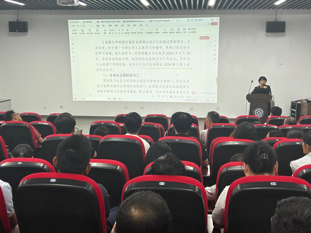 集中组织教师学习了成都大学校园交通管理办法,再次提醒大家注意校内行车安全,要求大家遵守交通规则,确保校园内道路畅通、安全有序。她强调,交通安全关系到每一位师生的生命财产安全,要求全院师生高度重视。