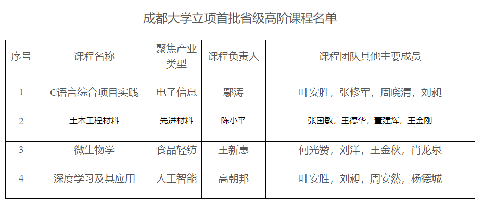 两门课程《C语言综合项目实践》和《深度学习及其应用》荣幸入选,成为四川省首批省级高阶课程。