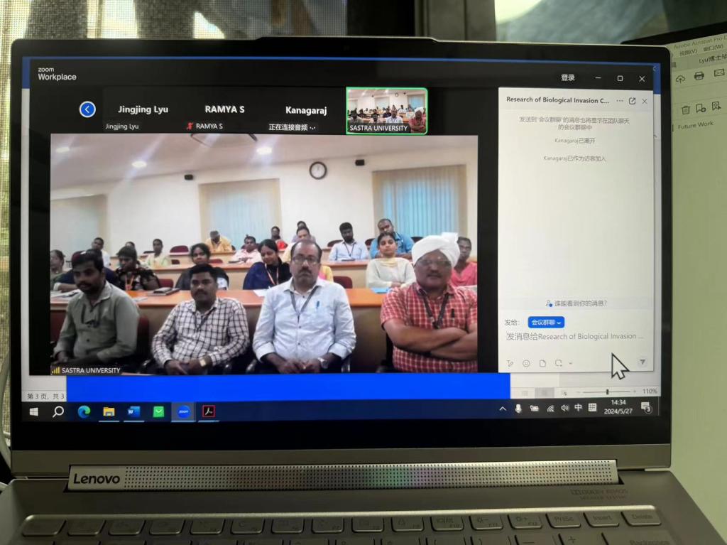 吕晶晶博士深入探讨了如何利用TYC策略来控制生物入侵的问题,以及如何通过优化控制方法提高防治效果,她通过详实的数据和生动的案例,向大家展示了TYC策略在生物入侵控制方面的应用潜力和广阔前景。她的精彩演讲吸引了来自SASTRA Deemed University以及周边地区的众多学者和专家的关注。