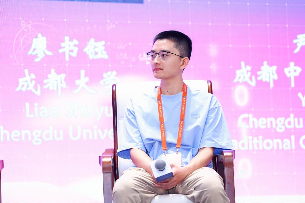 学子廖书钰与来自其他高校的同学围绕大数据算法、大模型技术应用等话题展开了深入交流,其专业素养受到与会专家好评。