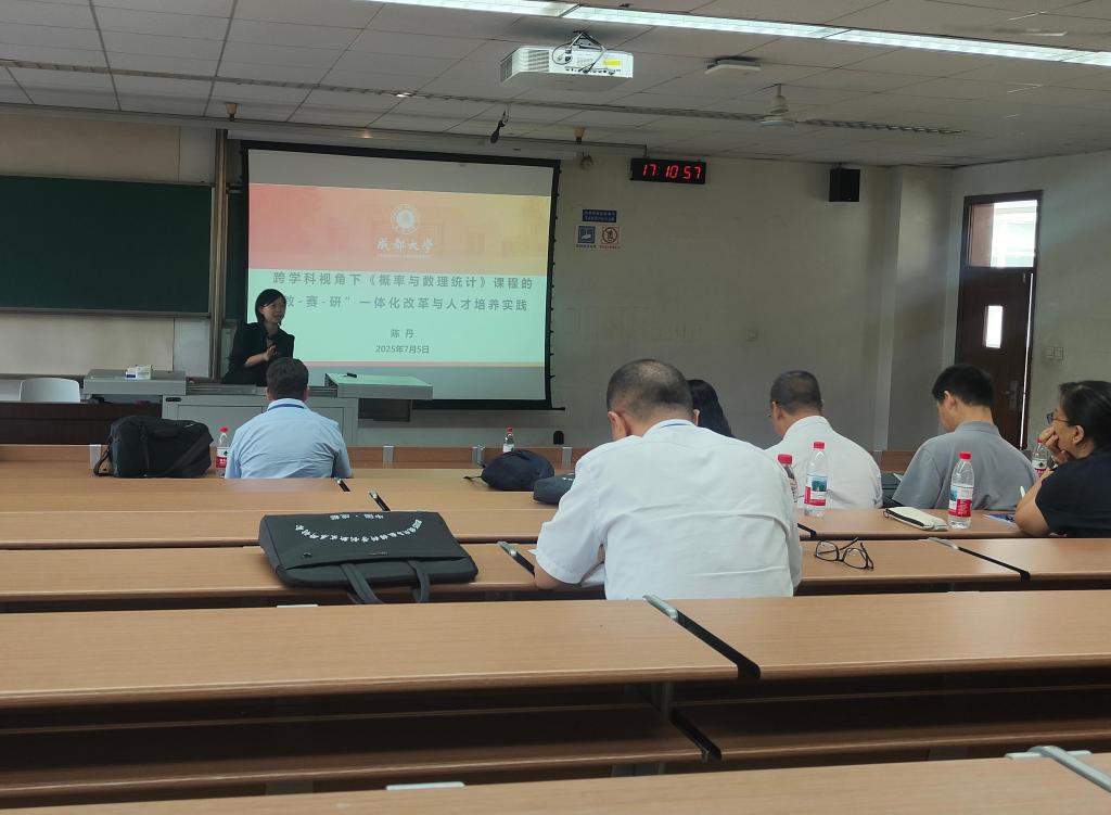 颁奖仪式后,团队负责人陈丹老师受邀作题为《跨学科视角下概率与数理统计课程的“教-赛-研”一体化改革与人才培养实践》的专题报告,并和与会学者进行了深入探讨。