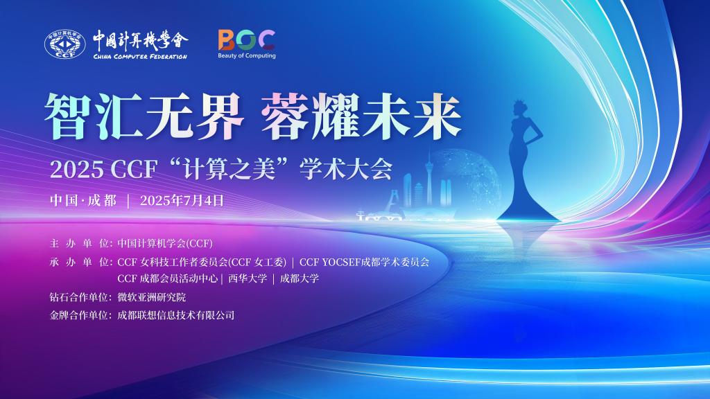 2025年7月3-4日,CCF“计算之美”学术大会在四川成都成功举办。作为中国计算机学会(CCF)女科技工作者委员会(CCF女工委)系列会议的旗舰论坛,本次大会由CCF主办,CCF女工委、CCFYOCSEF成都学术委员会、CCF成都会员活动中心、成都大学等联合承办。