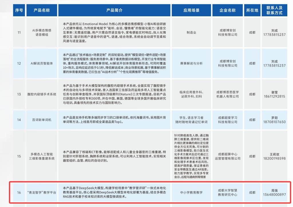 智慧教育研究成果“青龙智学”凭借突出的技术优势与教育应用价值,成功入选,标志着该成果进入四川省优质教育AI产品行列。
