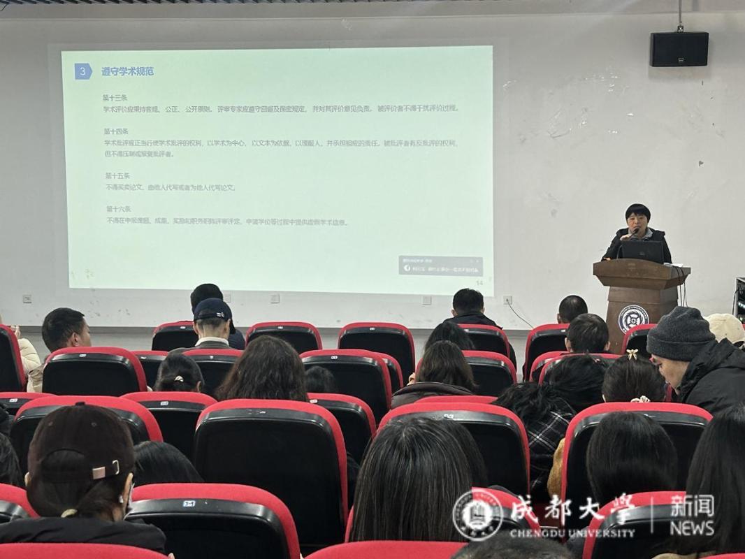 本次会议还进行了师风师德与学术诚信专题教育,组织学习了《成都大学教师职业道德守则》、《成都大学预防与处理学术不端行为办法(试行)》。肖小琼强调,全体教职工要坚守师德底线、规范从教行为,恪守学术诚信准则,自觉抵制学术不端行为,以高尚的道德情操与严谨的治学态度教书育人,营造风清气正的育人环境与学术生态。