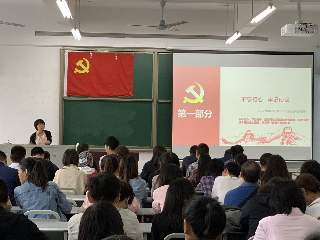 肖小琼主持学习了学校党委书记毛洪涛在“不忘初心、牢记使命”主题教育动员大会上的讲话精神。强调毛书记在动员会上开篇立意,不忘初心、牢记使命,是加强党的建设的永恒课题,是全体党员干部的终生课题,是当前一项重大政治任务。毛书记要求深化思想认识,切实增强开展主题教育的责任感和使命感,要求以彻底的自我革命精神,解决违背初心使命的各种问题,要求加强工作统筹,推动主题教育有力有序有效开展,要求加强组织领导,确保“不忘初心、牢记使命”主题教育取得实效。