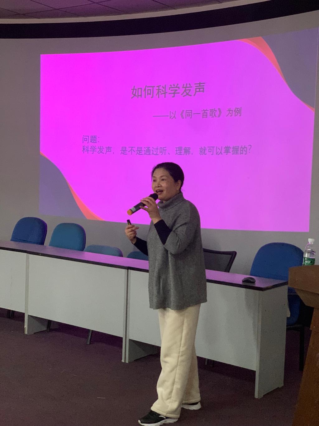 魏平教授为教师们讲授科学发声方式。
