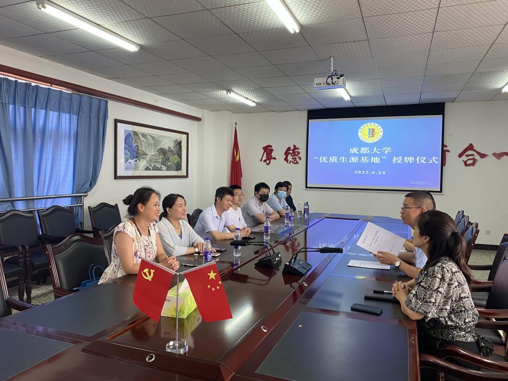 副院长刘昶教授一行代表学校前往新都区香城中学,签署协议并授牌,建立“新都香城中学优质生源基地”。香城中学副校长魏波代表香城中学参加了签署仪式。